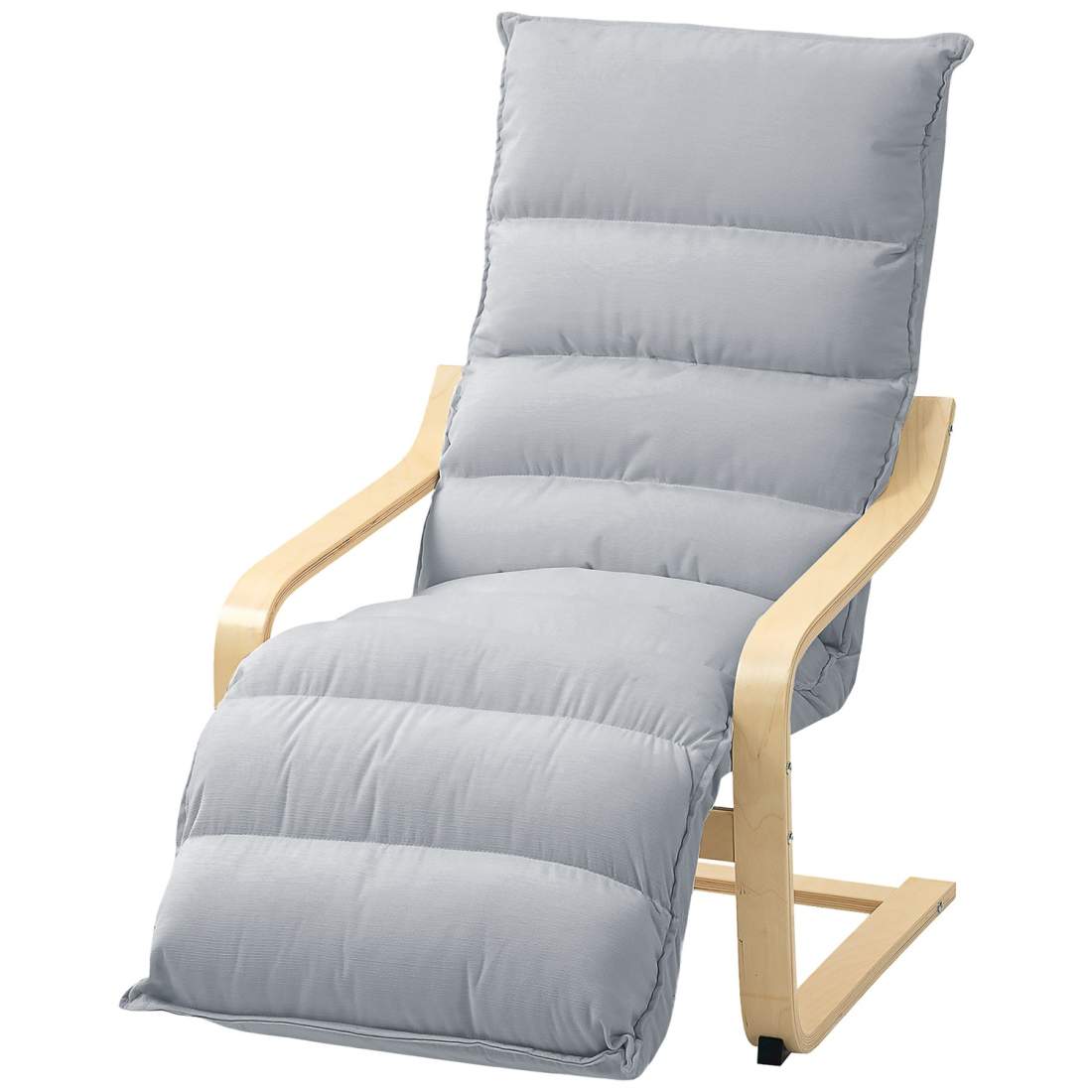 Fåtölj av björkträ, stoppad stol med justerbart fotstöd, modern fåtölj, ljusgrå
