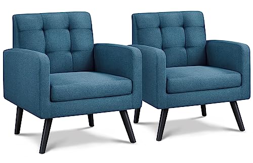 Yaheetech 1 par fåtöljer med armstöd, bekväm och modern, TV-fåtölj, relaxfåtölj, vardagsrum, klubbfåtölj, soffa, 136 kg, lastbar, blå