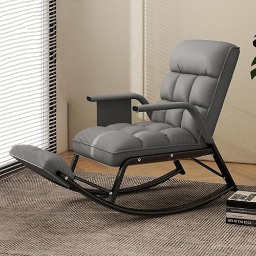 Modern stoppad gungstol med armstöd för balkong - Soft Sleeper Fåtölj med sidofickor och justerbar ryggstödshöjd