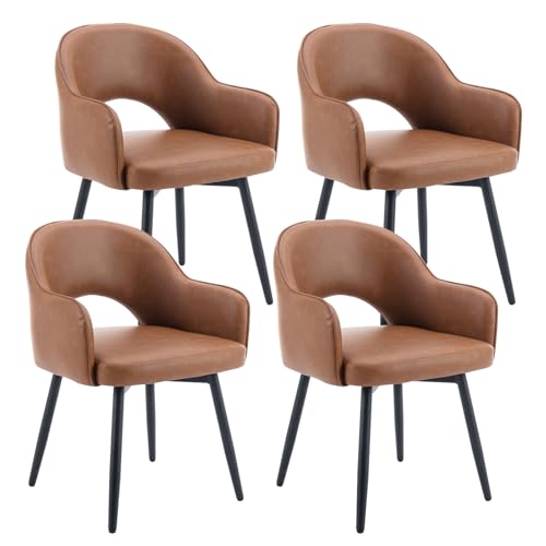 chairus Matstolar i PU-läder, set med 4 stoppade sidostolar, modern 360° svängbar fåtölj, accentstol för hemmakontor, vardagsrum (brun-4 (PU-läder))