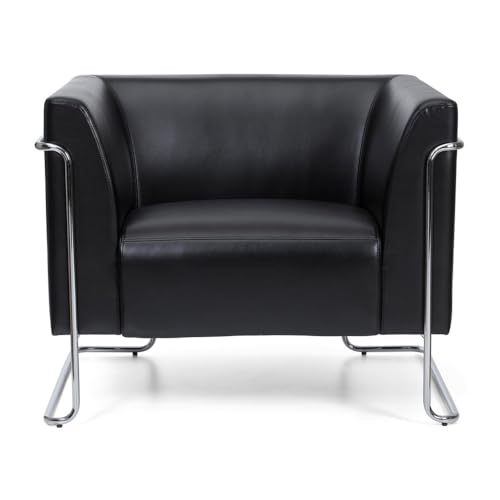 hjh OFFICE 713330 Lounge-fåtöljer CURACAO konstläder svart/silver 1-sits modern fåtölj, väntrum, kontor