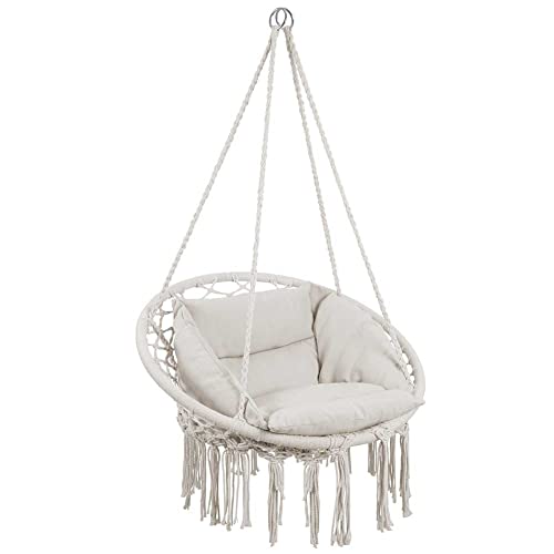 Bakaji Hängande fåtölj utomhus trädgård bomullsrep hängstol hängmatta terrass camping cirkulär stålram vadderad sits kudde modern design (beige)