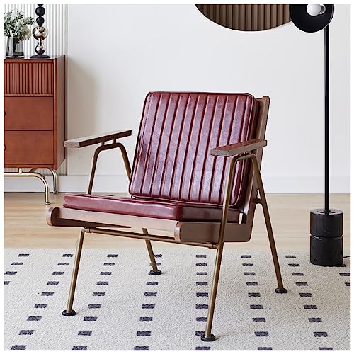 Accent Stolar Retro Iron Enkel Soffa Stol Landsbygd Fåtölj Mid Century Modern Stol Balkong Fritidsstolar Nostalgisk Fåtölj for Vardagsrum, Bondgård, Trädgård, Uteplats (Color : Burgundy)