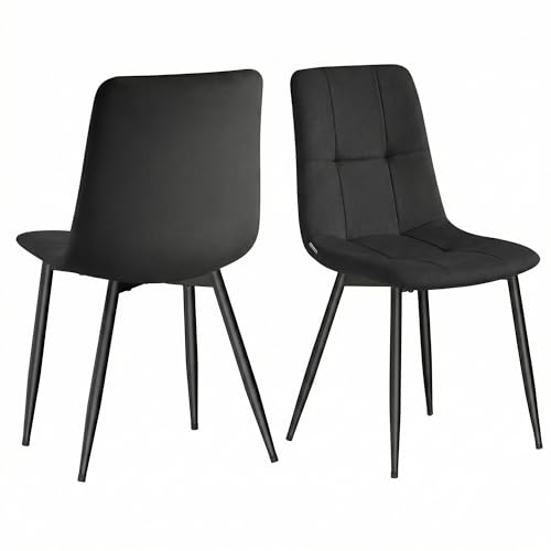 VASAGLE Matrumsstolar i sammet, köksstolar kan belastas upp till 120 kg, fåtölj med justerbara fötter, modern, vadderad, för vardagsrum, set om 4, bläcksvart KDC080BH01