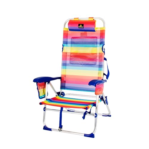 LAVANDA12009 Pride. Vikbar strandstol med armstöd och 7 vilopositioner. Modern design för denna fåtölj lätt att transportera för din praktiska väska-ryggsäck
