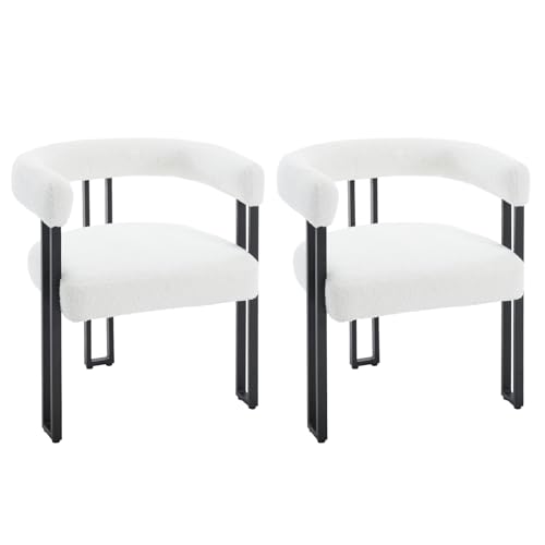WOLTU Matrumsstolar set om 2, matbord stolar med armstöd, designstol köksstol matstol, fåtölj bekväm modern, gjord av chenillemetall, creme, EZS25cm-2