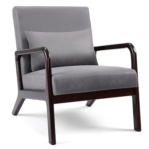 COSTWAY fåtölj, vardagsrum, loungefåtölj, vadderad, modern accentstol i trä med armstöd, enkelsoffa för vardagsrum, sovrum, 65 x 79 x 77 cm (grå)
