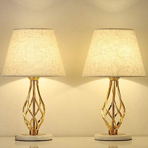 Liantral Gold sänglampor set om 2 – modern bordslampa för sovrum, vardagsrum, idealisk present, lampa med marmorbas och linneskärm
