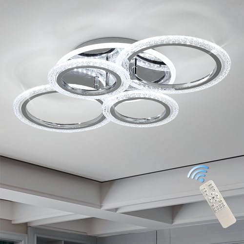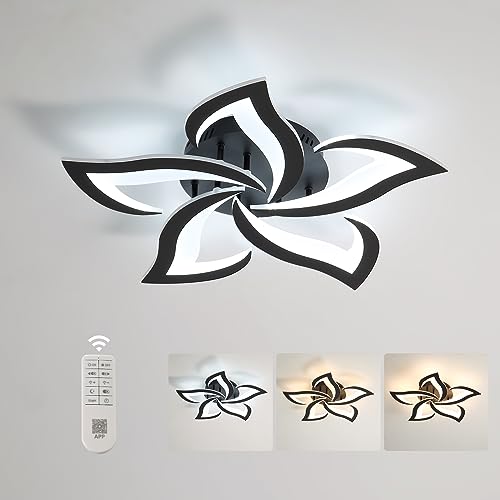 Modern LED-taklampa för vardagsrum, 3 000 K, 6 500 K, dimbar, med fjärrkontroll och appkontroll, timerfunktion, för kök, vardagsrum, sovrum, 5 huvuden