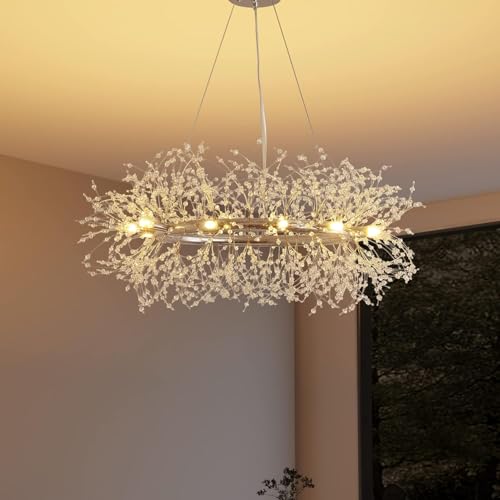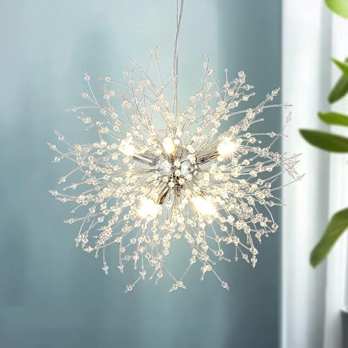 LynPon modern krom ljuskrona 8 lampor fyrverkeri Sputnik taklampa kristall maskros pendellampa för sovrum, vardagsrum, matsal, kök, hall