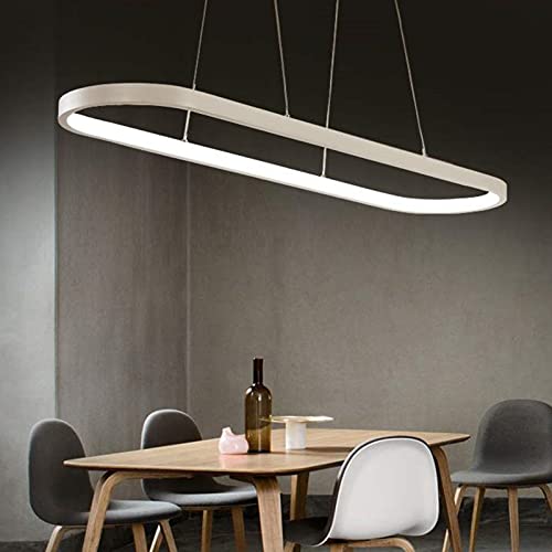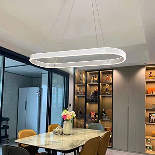 Bellastein hängande LED-pendellampa, oval, för matbord och kontor, dimbar med fjärrkontroll, modern ringdesign, ljuskrona för matsal, kökslampa, bländar inte (L 90 cm, vit)