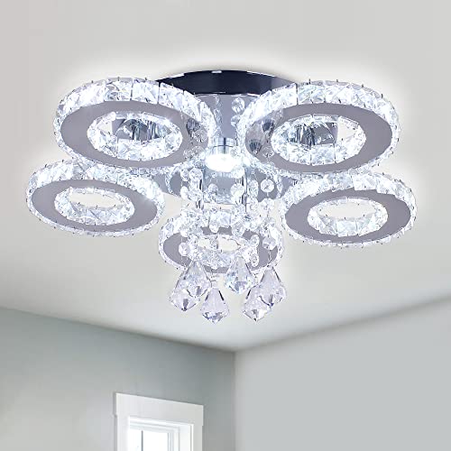 Bestier modern halvlång ljuskrona av krom och kristall, belysning, LED-taklampa, för matsal, badrum, sovrum eller vardagsrum