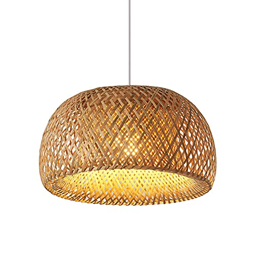 CSSYKV Modern Bambu Ljuskrona Interiördekoration Hängande Lampor Korglampa Skärm Vintage Hängande Lampor Handvävad Taklampa E27 Skruv Enkel Lampa För Vardagsrum Och Sovrum