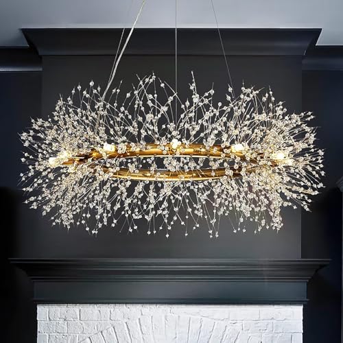 Fyrverkeri ljuskrona, modern kristall rostfritt stål maskros lång,guld 9-ljus Chandelier Fixture Kitchen Dining Room Bedroom 72cm Chandelier