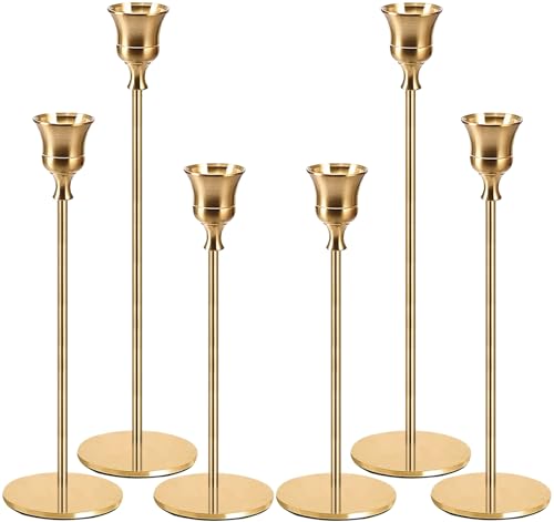 FAMKEEP Ljusstake Ljusstakar 6 Styck, Modern Vintage Ljushållare Set, Bröllopsljusstake, Guld Ljusstakar för Matsal Vardagsrum Födelsedag Heminredning