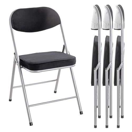 HAKU Fällbar stol, set om 4 aluminium, svart, Metall, sammetstyg - Storlek: B 46,00 cm x H 80,00 cm x D 53,00 cm, Stil: Modern