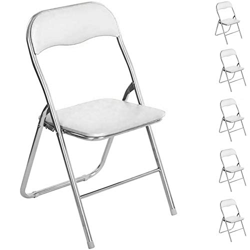 Bakaji Set 6 Vadderade stolar Folding Space Sparare Stol med Tubular Struktur PVC nitning Modern Design för Matsal Kök (Vit)