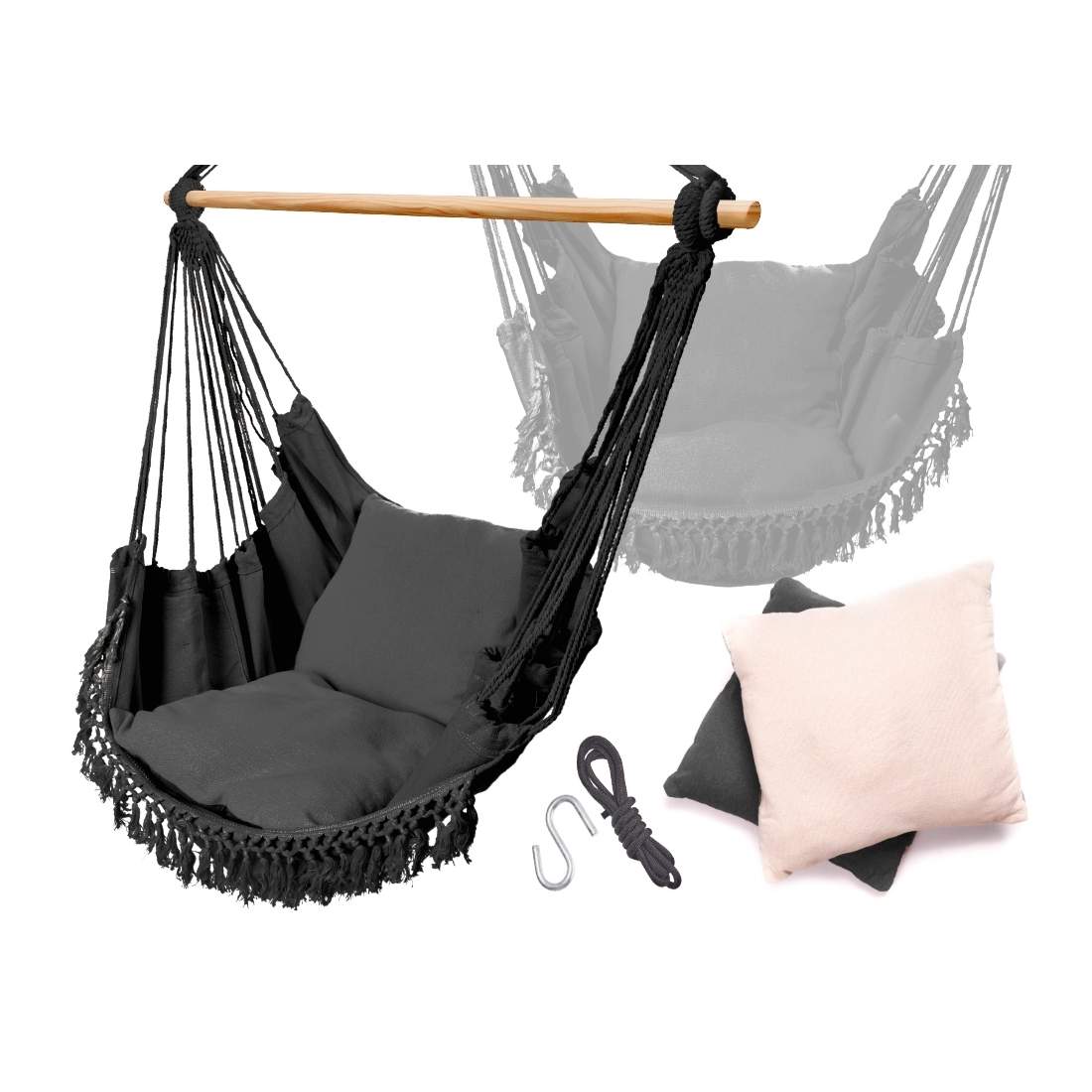 Bakaji Fåtölj Hängande Utomhus Trädgård Bomull Rope Stol Hängmatta Hängmatta Terrass Camping med rund struktur Stål Stoppad Kudde Modern Design (Grå)