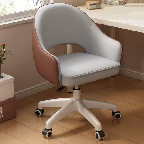 LXRHLIKG Fåfänglighet Stol med Hjul, Justerbar Höjd PU Ergonomisk Sminkstol, Modern Ryggsvängbar Fåfänglighetsstol för Kontor, Arbetsrum (Color : Gray-brown, Size : Sponge)