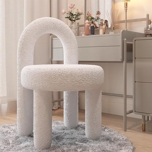 Sminkstolar Modern Fåfänga Stol Vuxen Gjord av Metall+lammull, Fåfänga Stol Vuxna med Ryggstöd för Omklädningsrum, Sminkrum 40 * 44 * 74cm 6 Färger (Color : White, Size : 40 * 44 * 74cm)