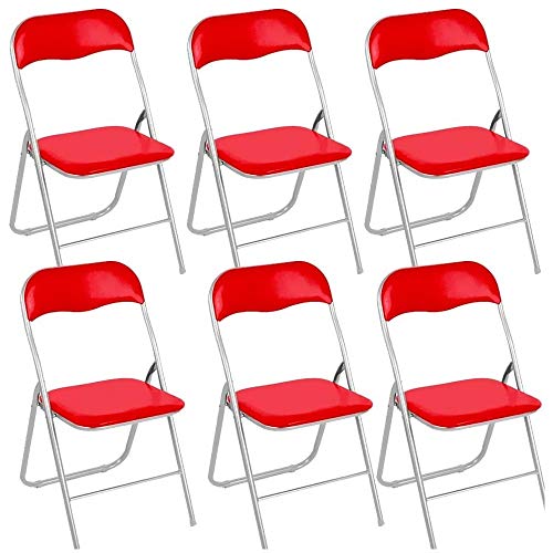 BAKAJI Set 6 Vadderade stolar Folding Space Safeting Stol med rörstruktur i metall PVC Modern Design för Matsal Kök (Röd)
