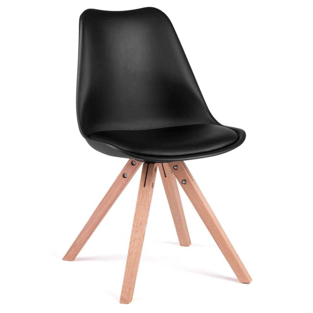 NEWBULIG Matrumsstolar set med 4 Mid-Century modern matsal vardagsrum sovrum utomhus lounge stol PU läder kuddar och träben, svart, 4-pack