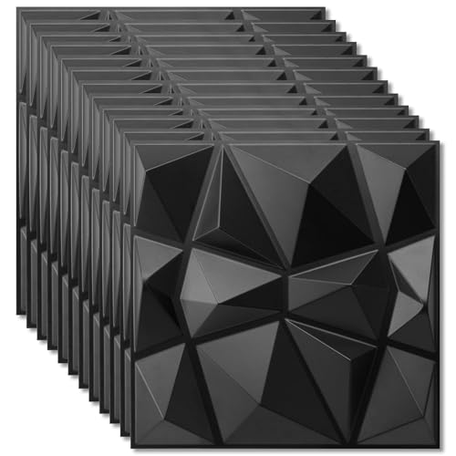 FENGQQKJ 3D-väggpaneler, 12 stycken, svart, PVC-platta, 3D-paneler, fasadbeklädnad, takpaneler, tapet, Modern, Urban