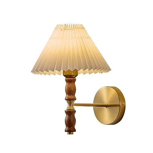 Elksdut Vägglampa i valnöt 1 paket Moderna lampetter Väggbelysning Vintage vägglampor med skärm i veckat tyg, vägglampa vid sängkanten för sovrum Vardagsrum hall, entré, E14-lampa (ingår ej)