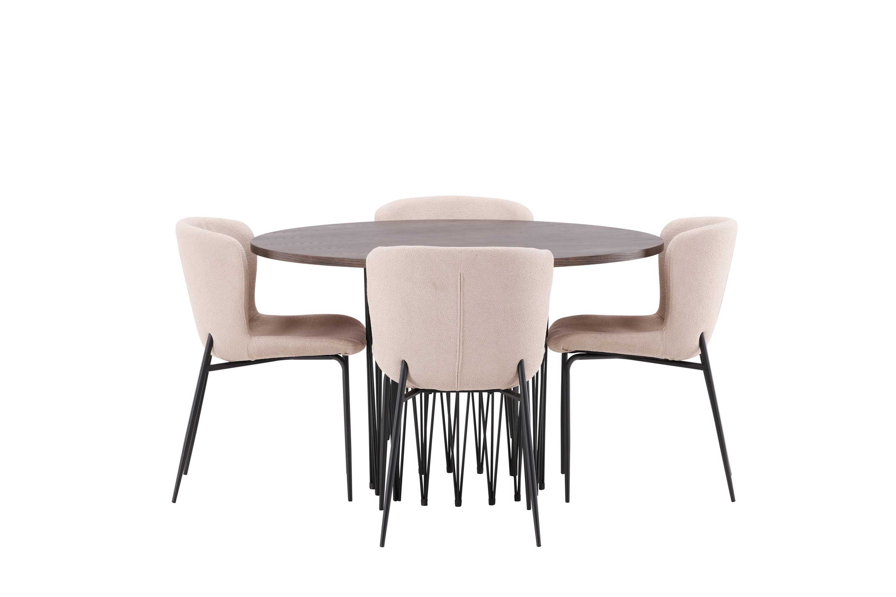 Venture Home Matgrupp Copenhagen Ø 115 cm med 4 Modesto Stolar Dining Table Black Mocca Veneer +Modesto Chair Beige Boucle _4 GR23202