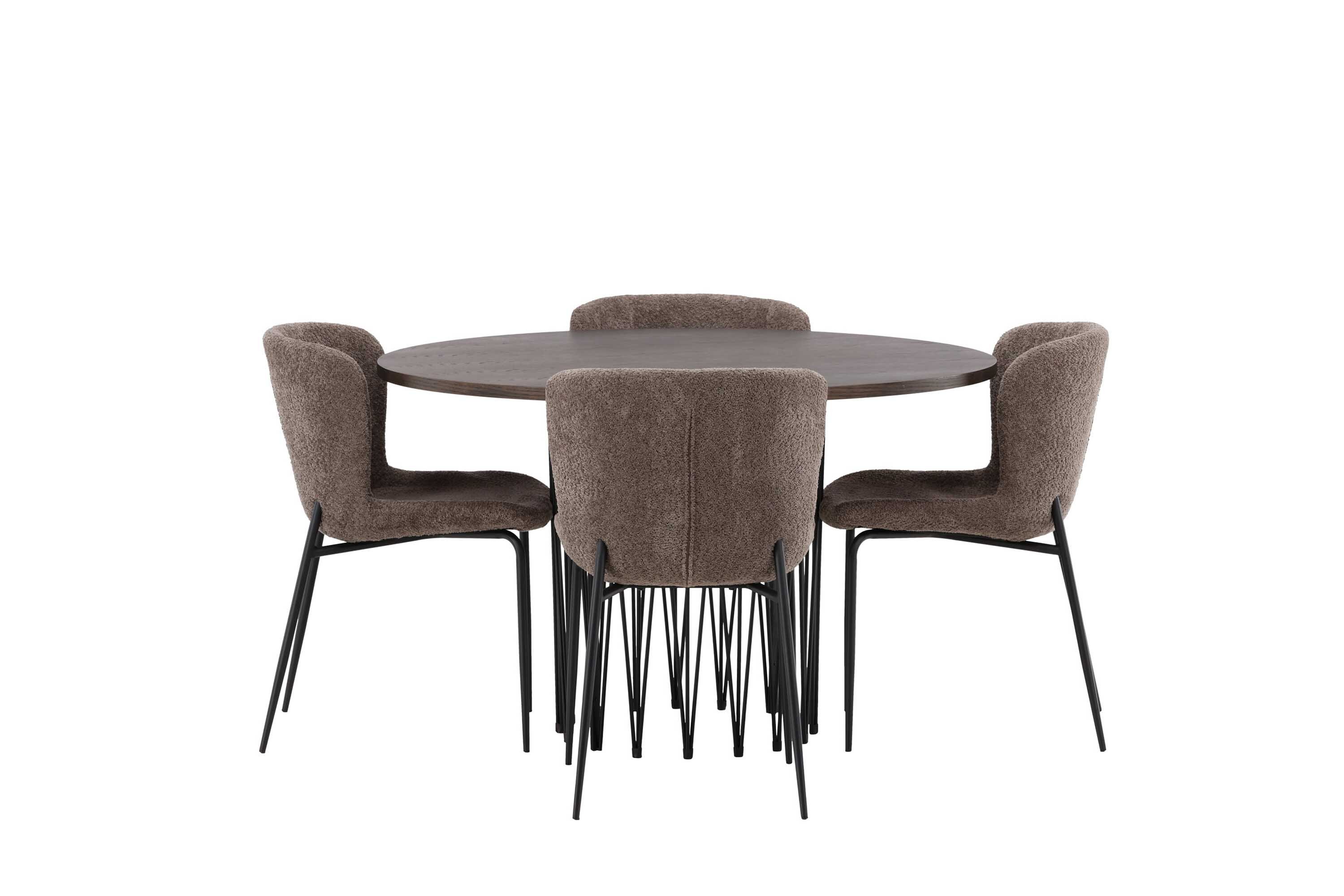 Venture Home Matgrupp Copenhagen Ø 115 cm med 4 Modesto Stolar Dining Table Black Mocca Veneer +Modesto Chair Grey Smoked Boucle _4 GR23203
