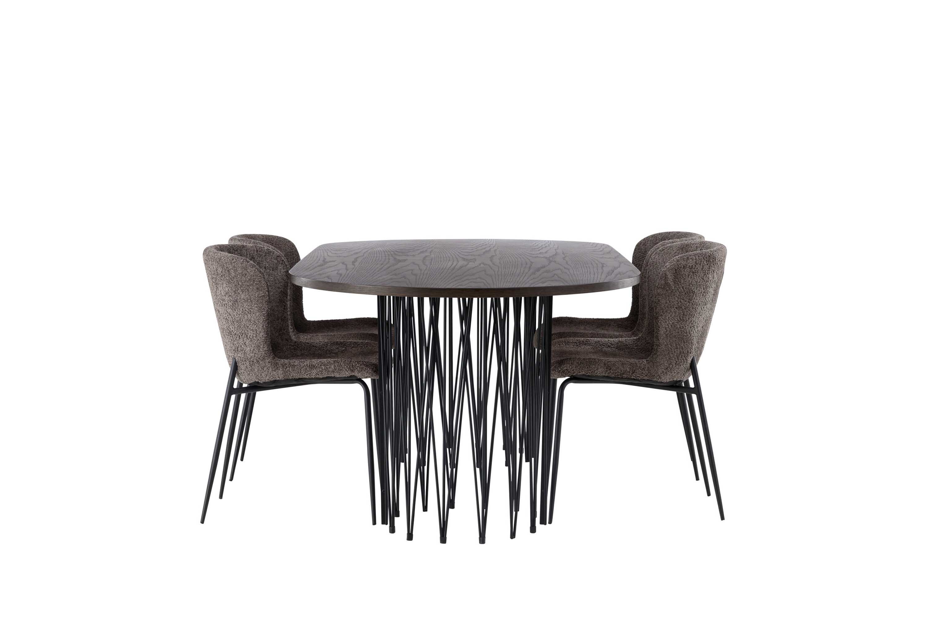 Venture Home Matgrupp Stone med 4 Modesto Stolar oval Dining Table Black Mocca Veneer +Modesto Chair Grey Smoked Boucle _4 GR23043