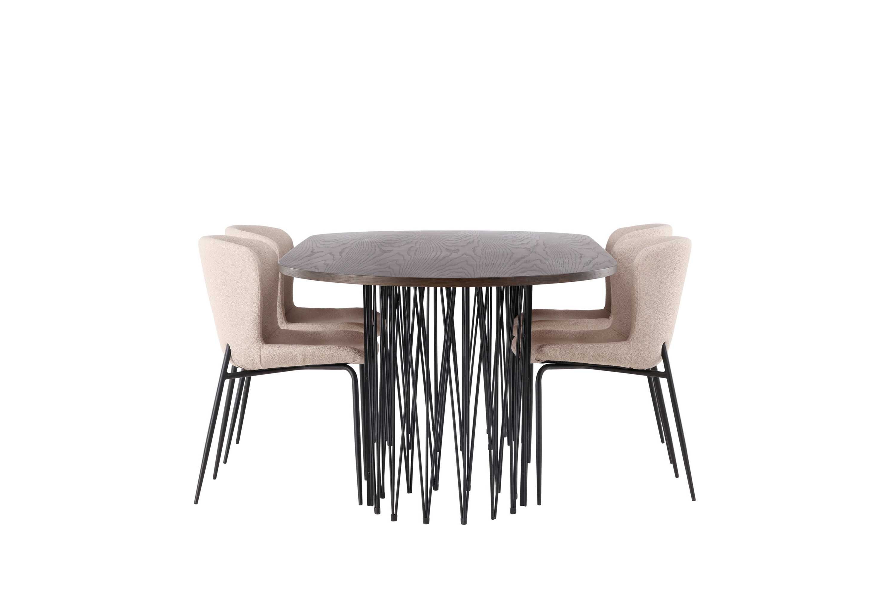 Venture Design Tempe & Modesto matgrupp Beige/valnöt 4 stolar & bord 140 x 80 cm