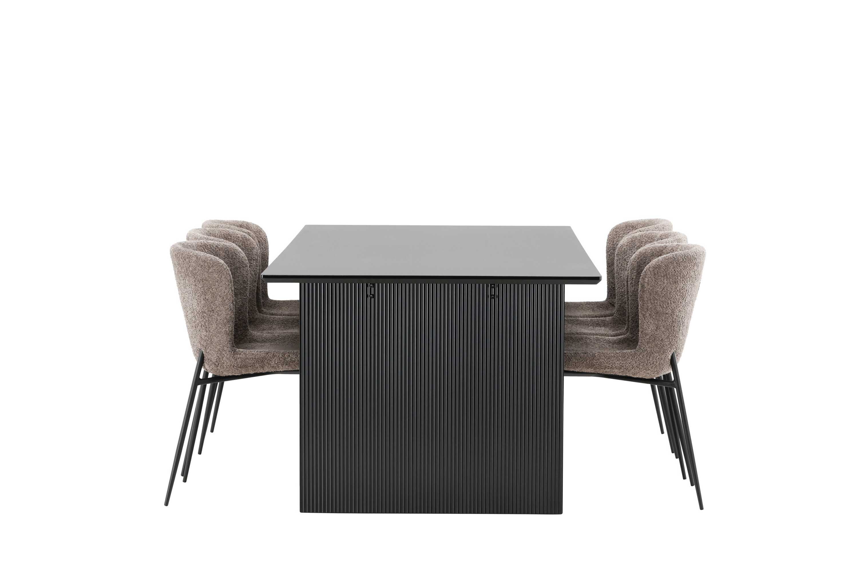 Venture Design Vail & Modesto matgrupp Beige/svart 6 stolar & bord 200 x 100 cm