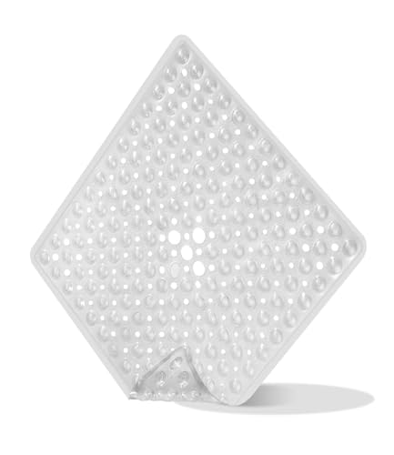 SOBEAU Halkskydd Duschmatta, halkfri, 53 x 53 cm, kvadratiska duschmattor, BPA-fri – halkfri matta för dusch med dräneringshål för mögel- och svampresistent (transparent)