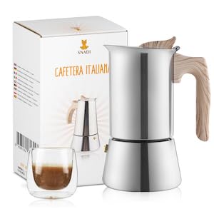 Snadi - Italiensk Moka Kaffebryggare | Modern och Elegant Design | För Induktion, Glaskeramikhäll, Elektrisk och Gas | Ergonomisk och Stabil | Rostfritt Stål | Espresso Kaffe (4 Koppar)