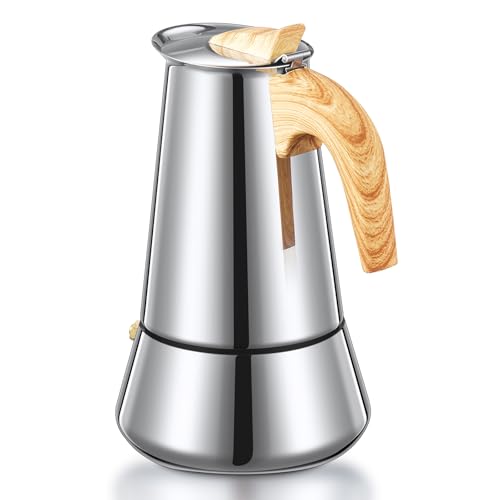 Yabano Moka Pot, 6 koppar rostfritt stål spishäll, espressomaskin för induktion, 350 ml italiensk kaffebryggare för gas och elektriska spisar, hållbar espressokruka för hem och camping