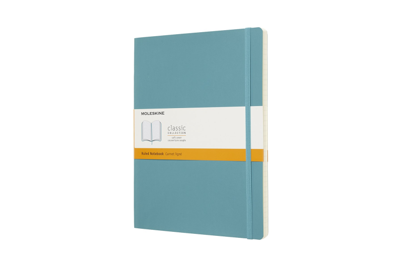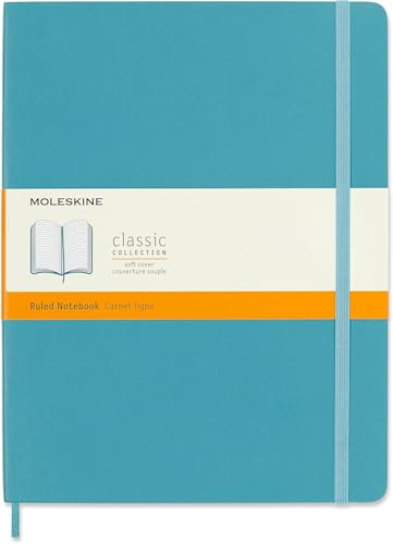 Moleskine Classic Ruled Paper Notebook - Soft Cover and Elastic Closure Journal - Color Reef Blue - X- Large 19 x 25 A4-192 Pages