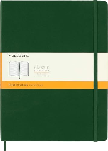 Moleskine Classic Ruled Paper Notebook, Hard Cover and Elastic Closure Journal, Color Myrtle Green, Size Extra Large 19 x 25 cm, 192 Pages