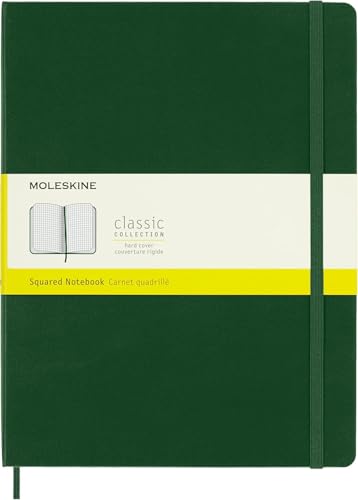Moleskine Classic Squared Paper Notebook, Hard Cover and Elastic Closure Journal, Color Myrtle Green, Size Extra Large 19 x 25 cm, 192 Pages