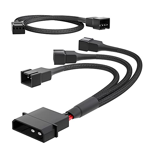 Poppstar fläktkabel, fläktsplitter 12V (15 cm 2-Pin Y-kabel 1x molex kontakt till 3x kontakter) + 30 cm 4-pin PWM förlängningskabel för anslutning av fläktar till ett nätaggregat