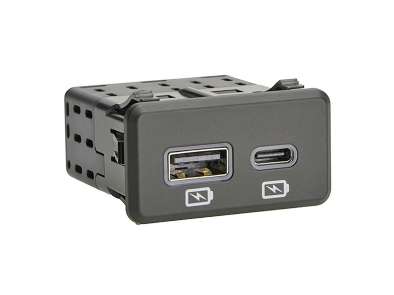 Brodit Strömadapter För Fast Installation Strömadapter För Fast Installation, Dubbla Usb Type-A Och Type-C Uttag, Qualcomm Quick Charge 3.0, 5V/2,4A. 2-Polig Molex-Kontakt, Med Molex 2-Polig Kabel Och Usb-C Till Usb-C Kabel (216406)
