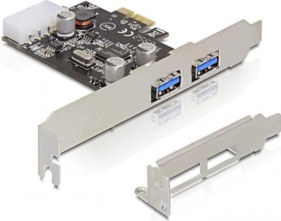 DeLOCK PCIe x1 kort, USB 3.0, 2xTyp A portar(2 ext), molex-ström