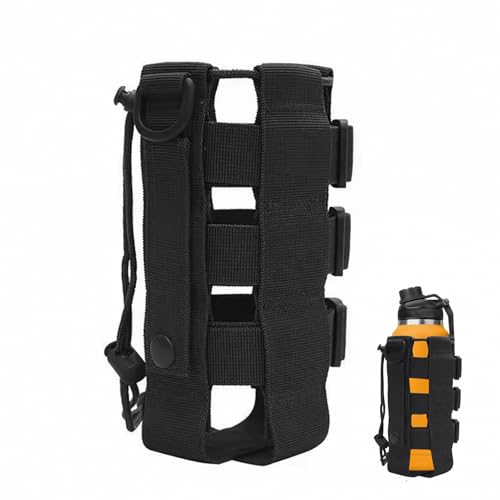Hugfads Taktisk flaskhållare av 1 000D nylon för militär, camping och vandring – robust vattenflaskhållare med Molle-system, svart, Nylon