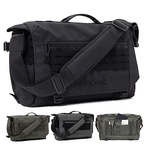 VEAGIA Kurirväska laptopväska portfölj Molle-system taktisk stil avtagbar axelrem axelväskor, Kolsvart, 16.5x11x4.5in