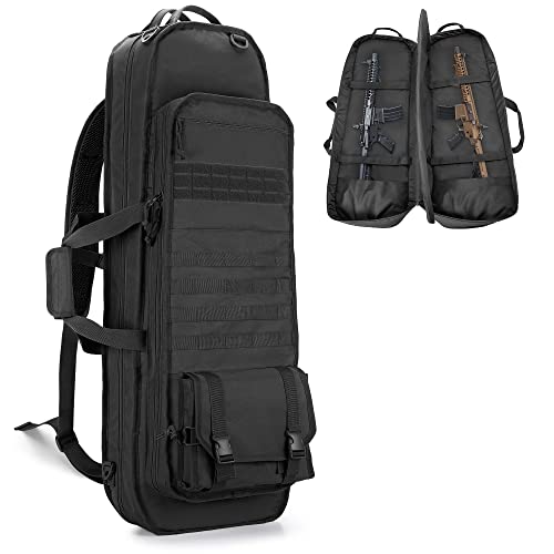 GOBUROS taktisk gevärsväska ryggsäck för 36 tums gevär, mjuk gevärsväska med 3 lagerhållare, vadderade axelremmar, låsbar dragkedja och Molle-system för jakt och skytte