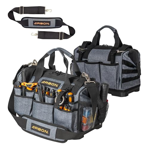 ARBON Tool Bag 17 Inch with Molded Base MOLLE System Heavy Duty Open Mouth Top Large Toolbag Tote Box Bags Storage Organizer for Men and Women Electrician Craftsman Hvac Carpenter Mechanic 34 Pockets