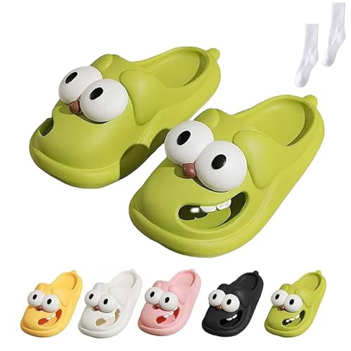 Tunga kyss tofflor, stora ögon hund kudde tofflor, halkfria flip-flops, söta roliga 3D moln dia för kvinnor och män, Grön, Women8-9/Men7.5-8