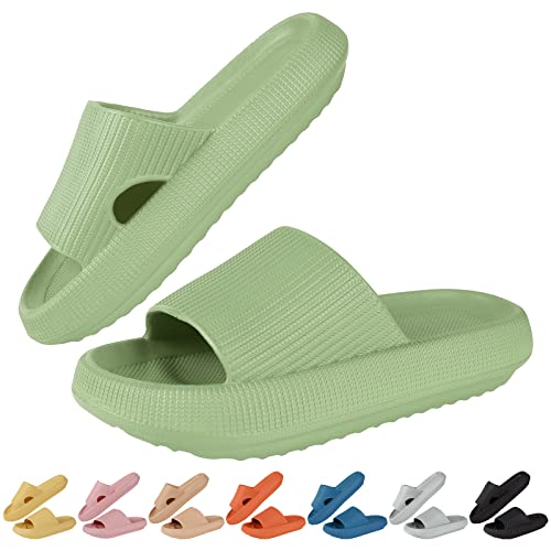 HEPODA Badtofflor för män och kvinnor, tofflor, Cozislides, Cozy Slides, mysiga hemmatofflor för sommaren, badskor, halkfria, som på moln, slip-in, skor, Grön, 40/41 EU