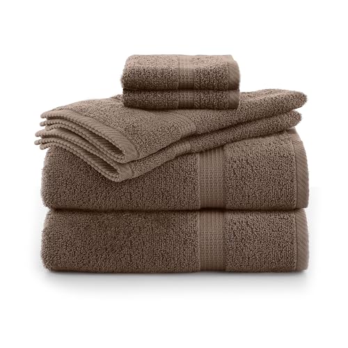 Martex Utica 6-Piece Essential Towel Set - Super Soft - Extra Absorbent - 100% Cotton Towels - Everyday Essentials - 2 Bath Towels - 2 Hand Towels - 2 Wash Cloths - Hotel & Spa Luxury - Brown