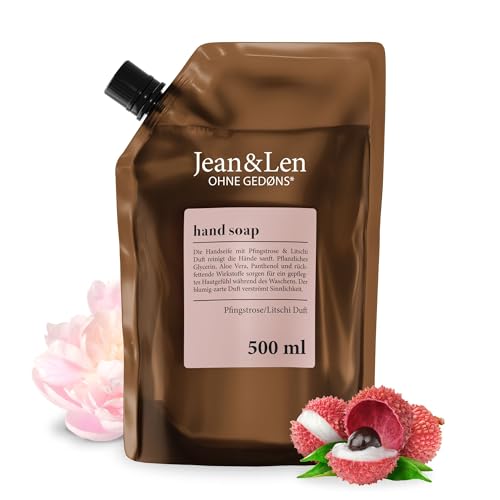 Jean & Len Hand & Body Wash pion & litchi, rengör och ger näring åt huden vid tvätt, blommig och delikat doft, flytande tvål i refillförpackning, utan parabener, silikoner och mikroplaster, vegan, 500